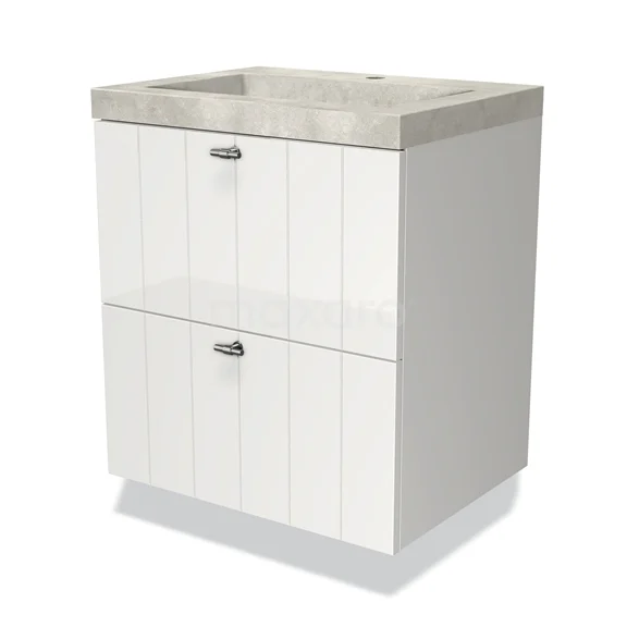Modulo Waschtische | 60 cm Hochglanz Weiß Lamelle front Beton 2 übereinanderliegende Schubladen