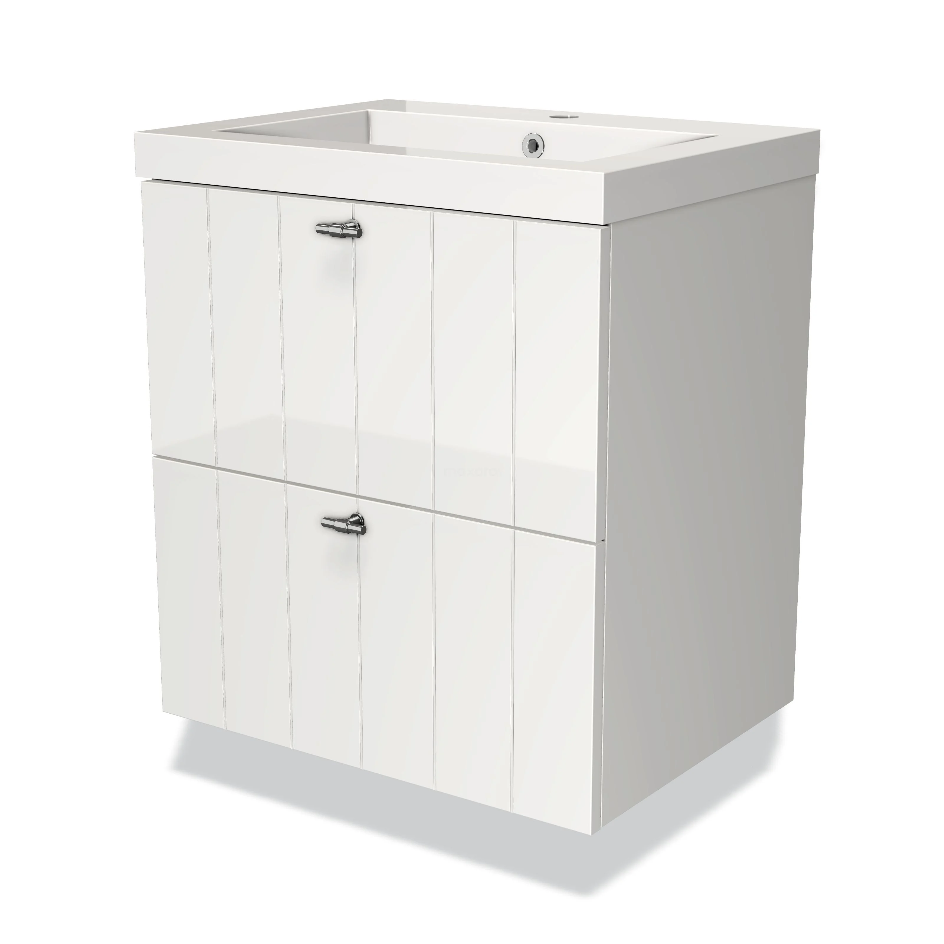 Modulo Waschtische | 60 cm Hochglanz Weiß Lamelle front Mineralguss 2 übereinanderliegende Schubladen