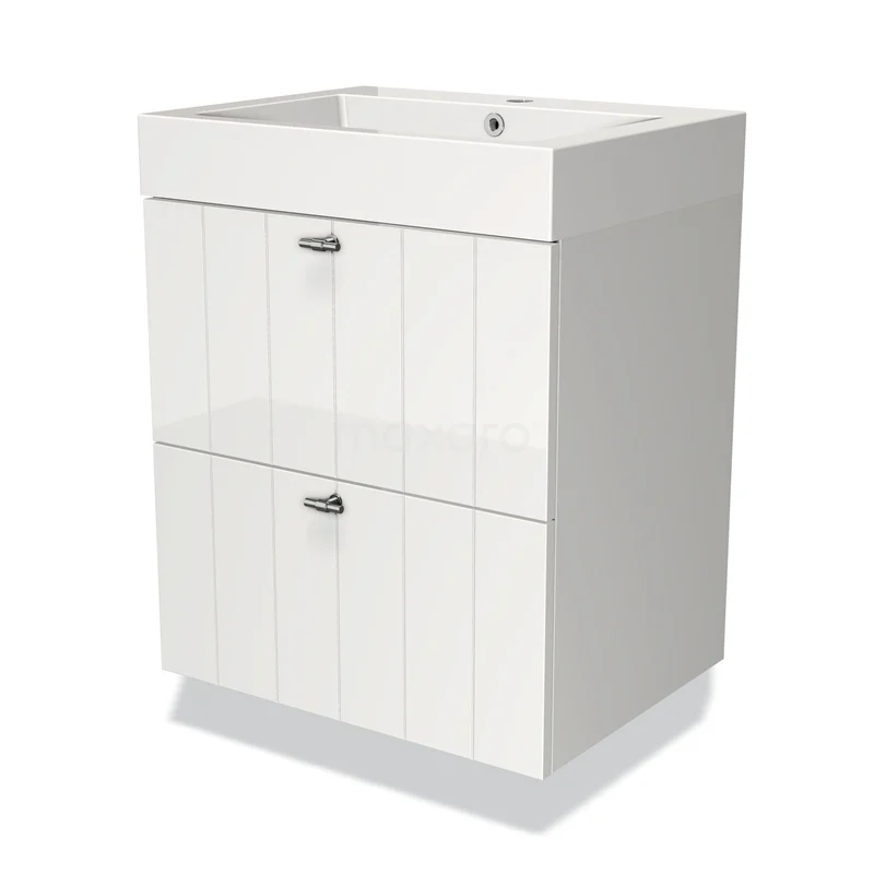 Modulo Waschtische | 60 cm Hochglanz Weiß Lamelle front Mineralguss 2 übereinanderliegende Schubladen