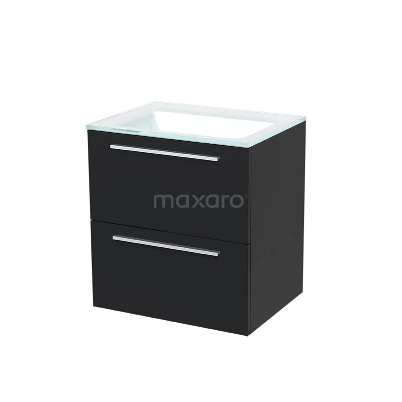 Modulo Waschtische | 60 cm Matt Schwarz Flach front Glas 2 übereinanderliegende Schubladen