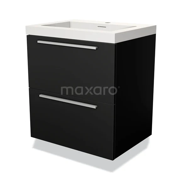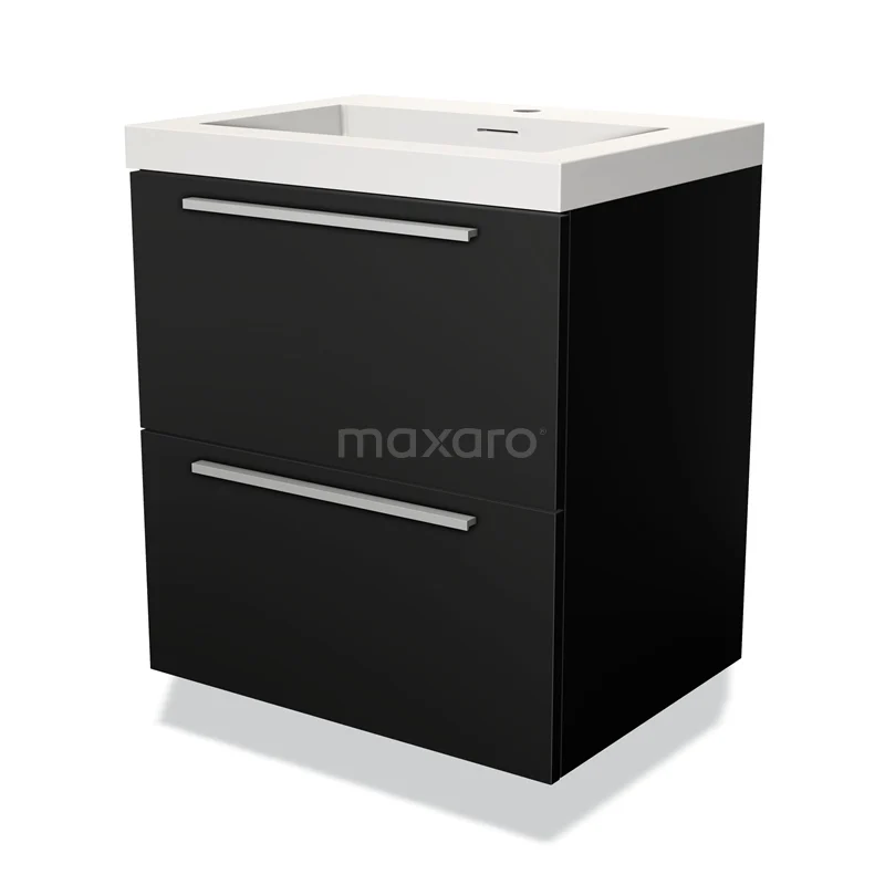 Modulo Waschtische | 60 cm Matt Schwarz Flach front Solid Surface 2 übereinanderliegende Schubladen