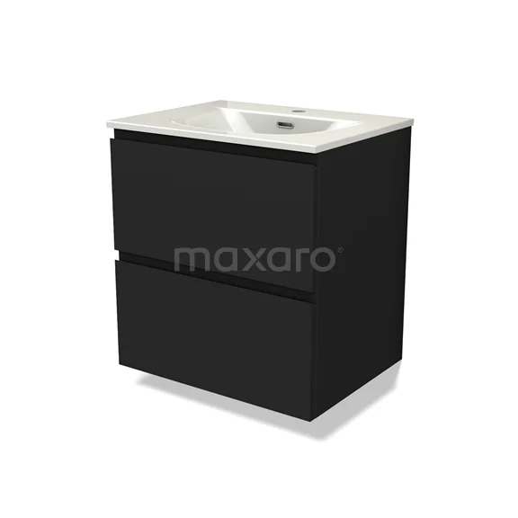 Modulo Waschtische | 60 cm Matt Schwarz Grifflos front Keramik 2 übereinanderliegende Schubladen