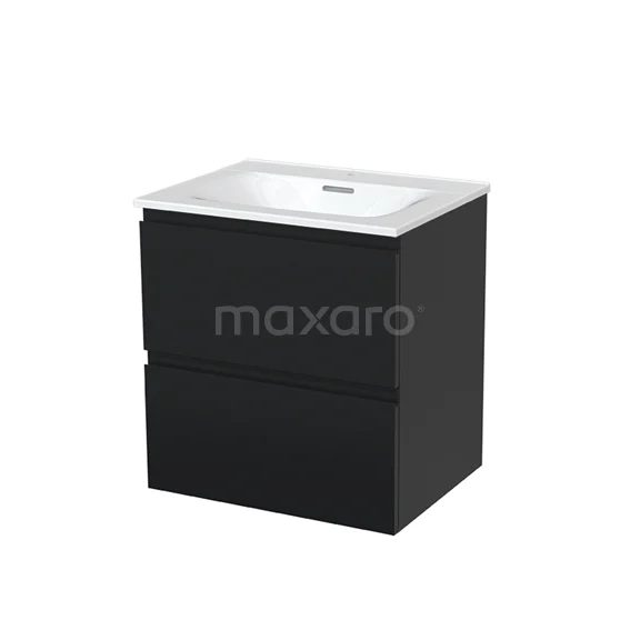 Modulo Waschtische | 60 cm Matt Schwarz Grifflos front Keramik 2 übereinanderliegende Schubladen