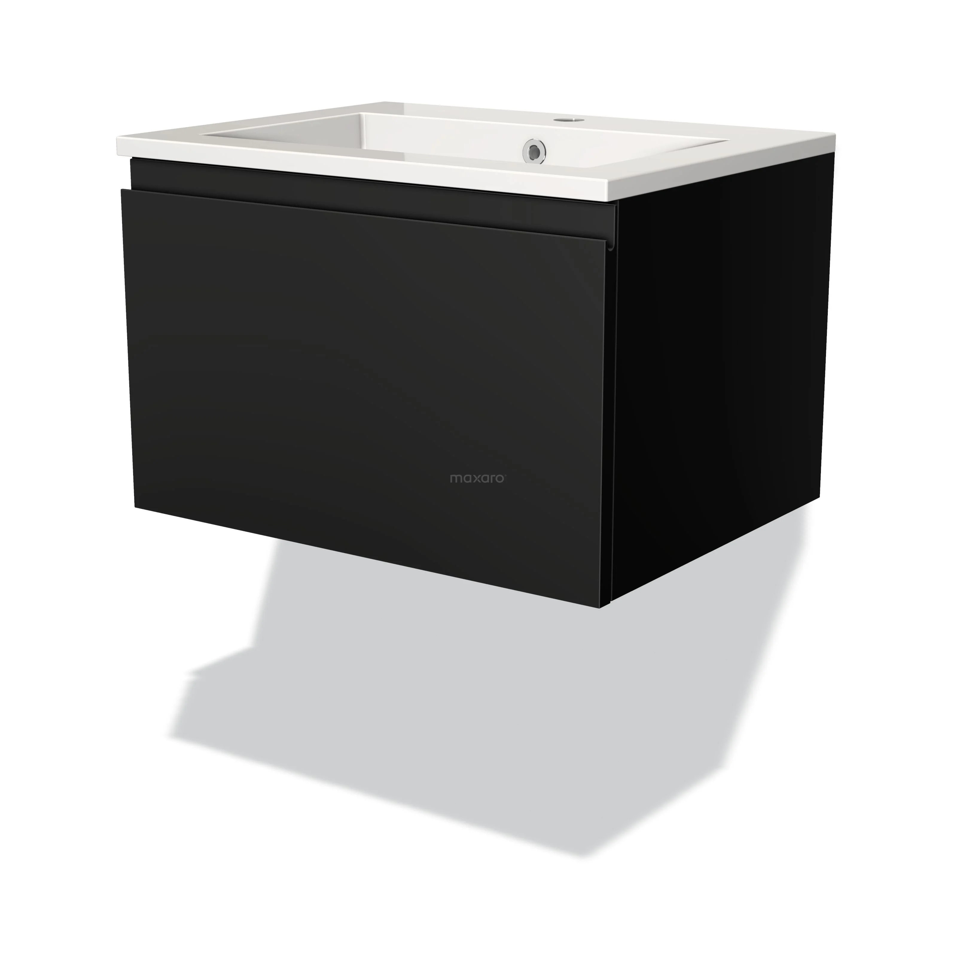 Modulo Waschtische | 60 cm Matt Schwarz Grifflos front Mineralguss 1 Schublade