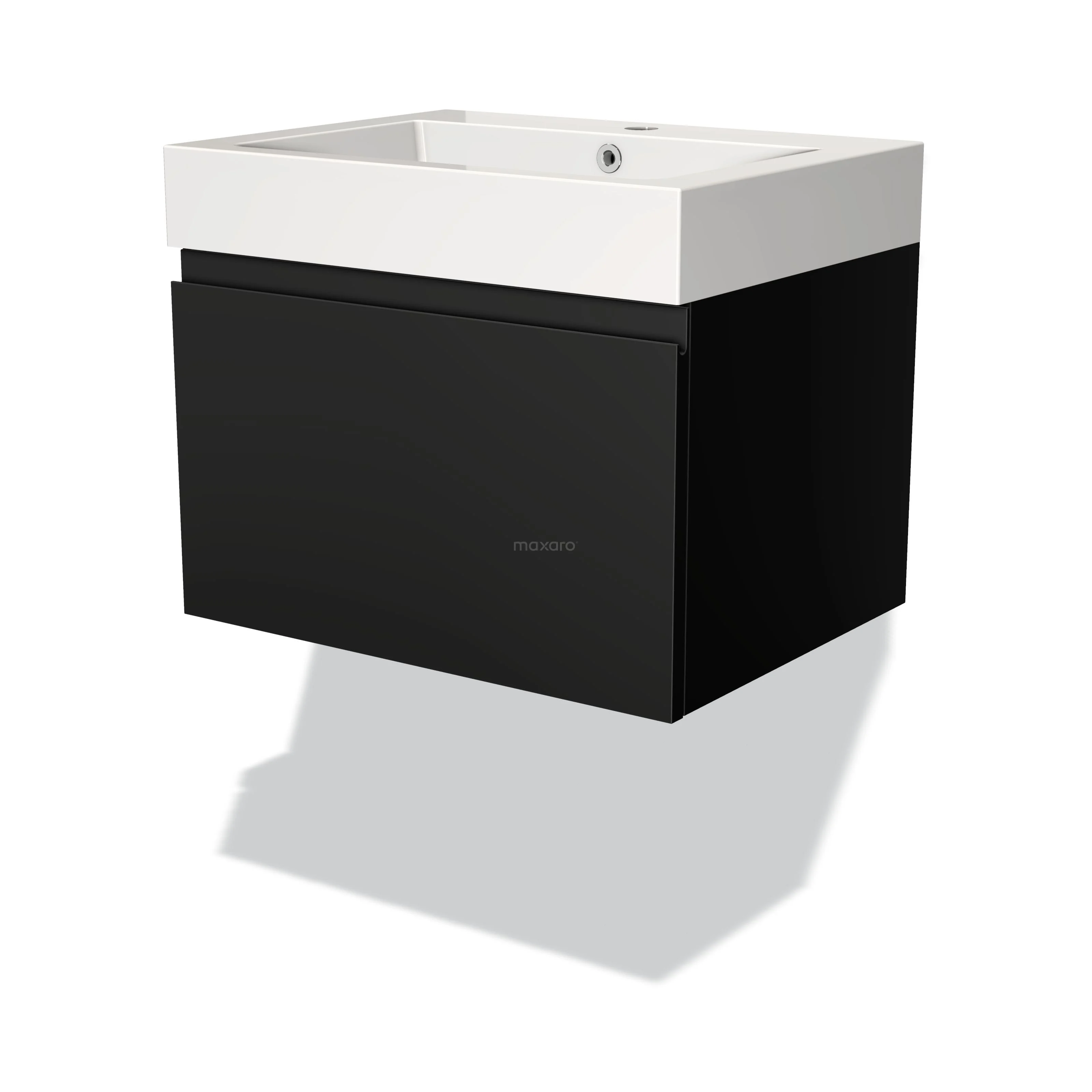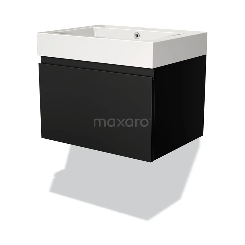 Modulo Waschtische | 60 cm Matt Schwarz Grifflos front Mineralguss 1 Schublade