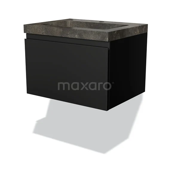 Modulo Waschtische | 60 cm Matt Schwarz Grifflos front Naturstein 1 Schublade