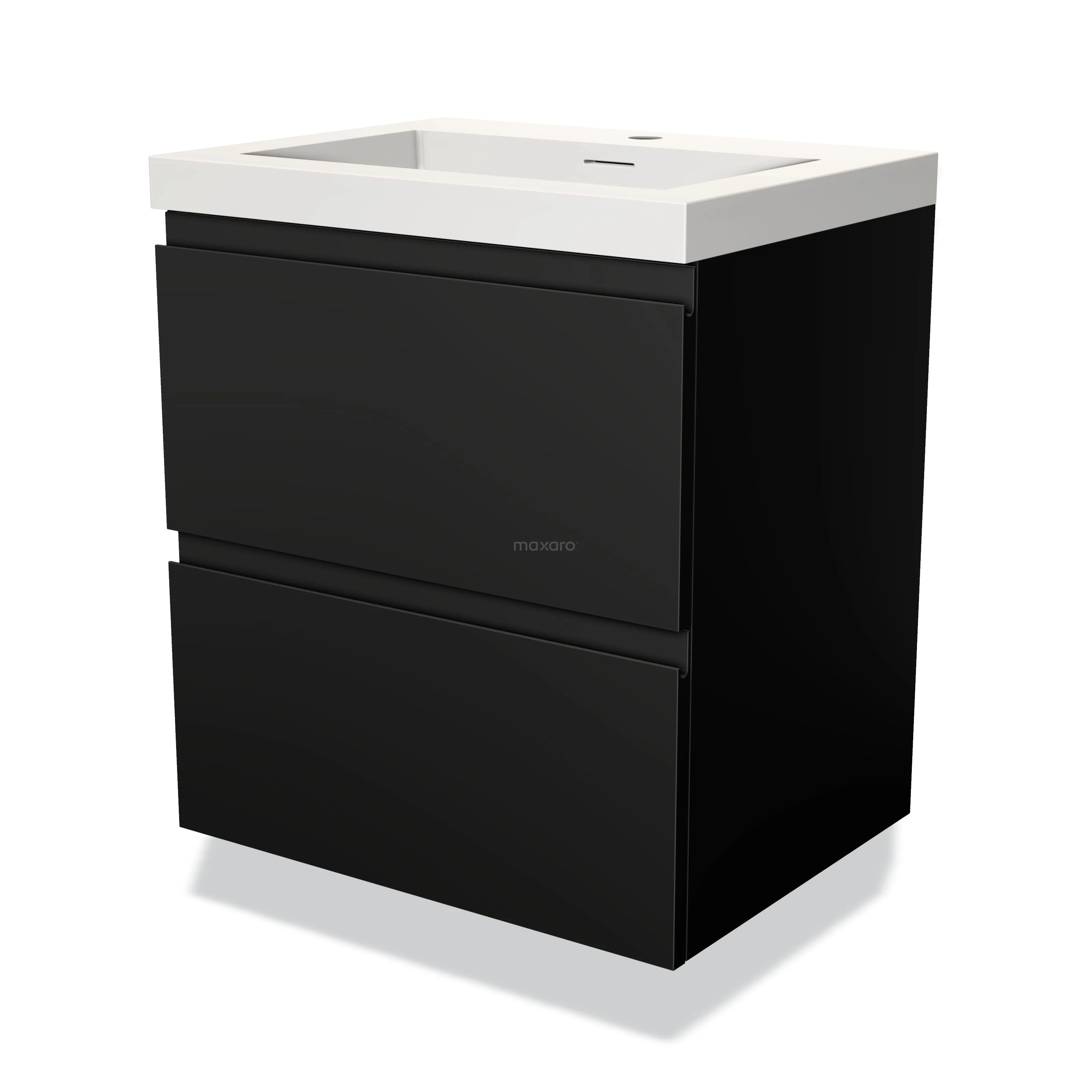 Modulo Waschtische | 60 cm Matt Schwarz Grifflos front Solid Surface 2 übereinanderliegende Schubladen
