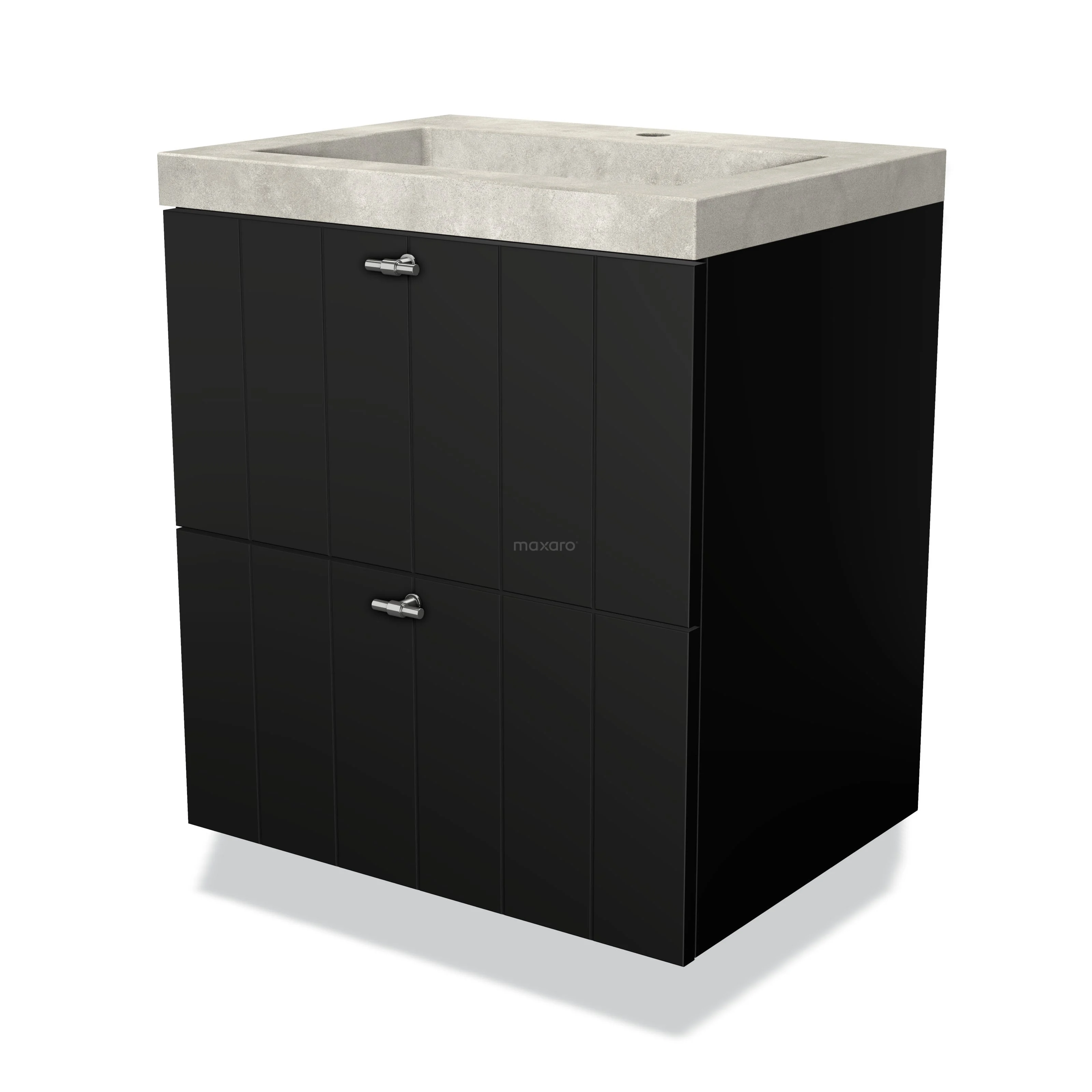Modulo Waschtische | 60 cm Matt Schwarz Lamelle front Beton 2 übereinanderliegende Schubladen