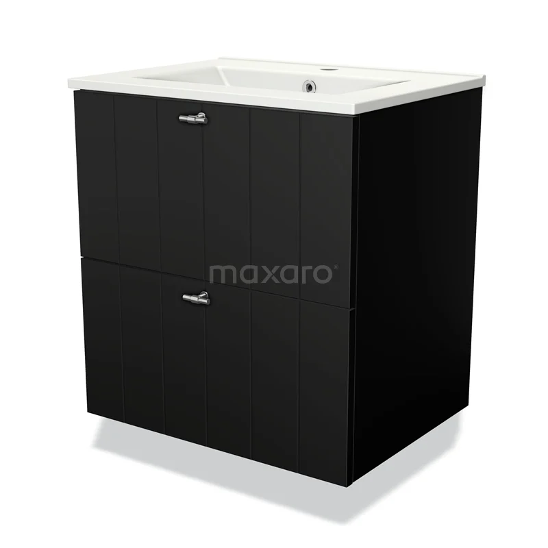 Modulo Waschtische | 60 cm Matt Schwarz Lamelle front Keramik 2 übereinanderliegende Schubladen