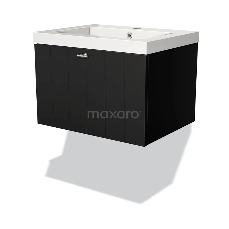 Modulo Waschtische | 60 cm Matt Schwarz Lamelle front Mineralguss 1 Schublade