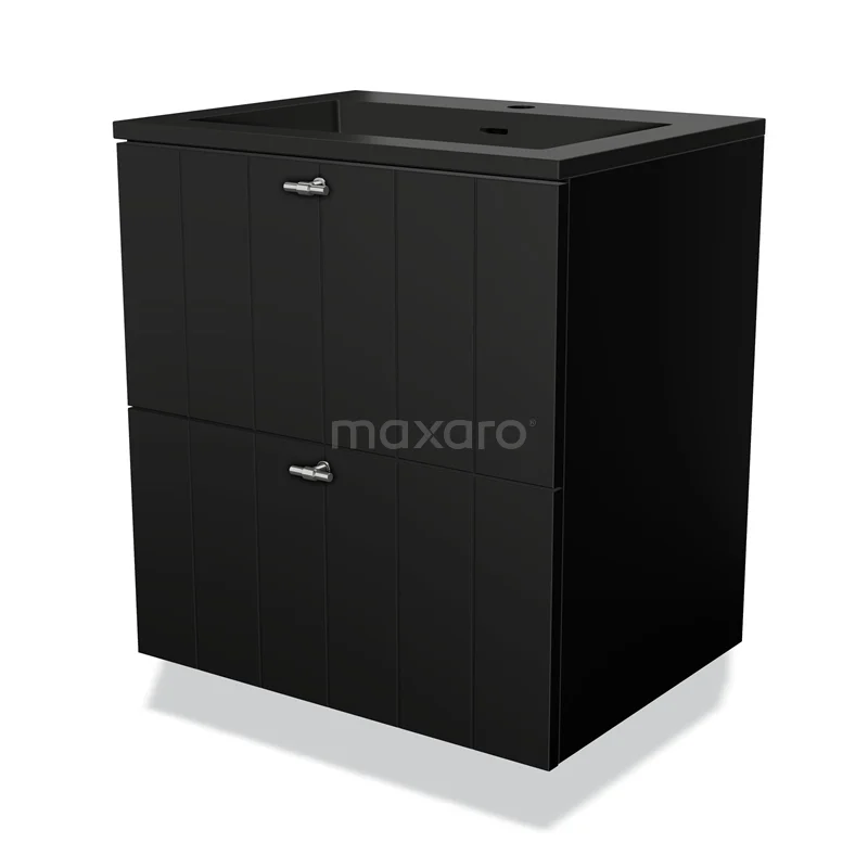 Modulo Waschtische | 60 cm Matt Schwarz Lamelle front Quarz 2 übereinanderliegende Schubladen