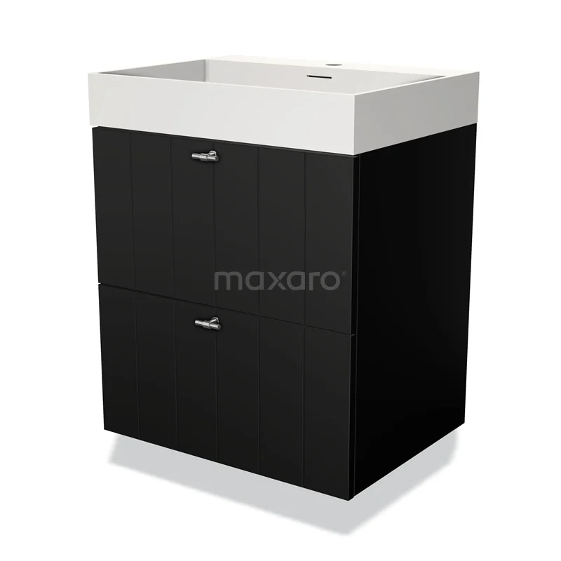 Modulo Waschtische | 60 cm Matt Schwarz Lamelle front Solid Surface 2 übereinanderliegende Schubladen