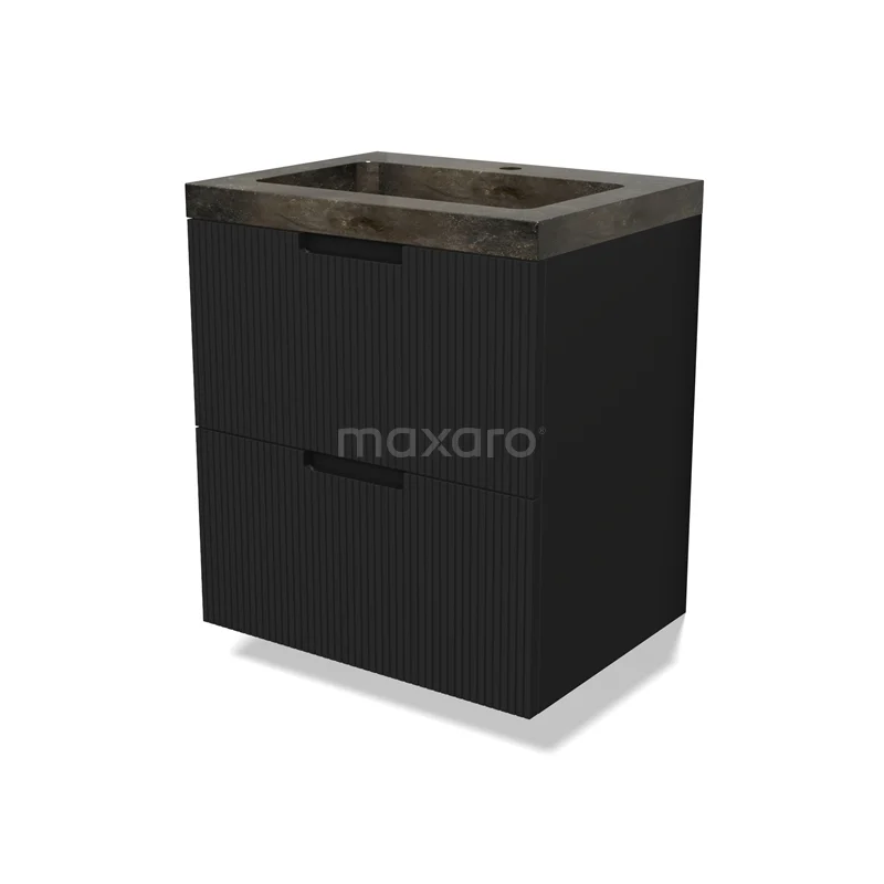 Modulo Waschtische | 60 cm Matt Schwarz Linie front Naturstein 2 übereinanderliegende Schubladen