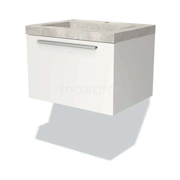Modulo Waschtische | 60 cm Matt Weiß Flach front Beton 1 Schublade