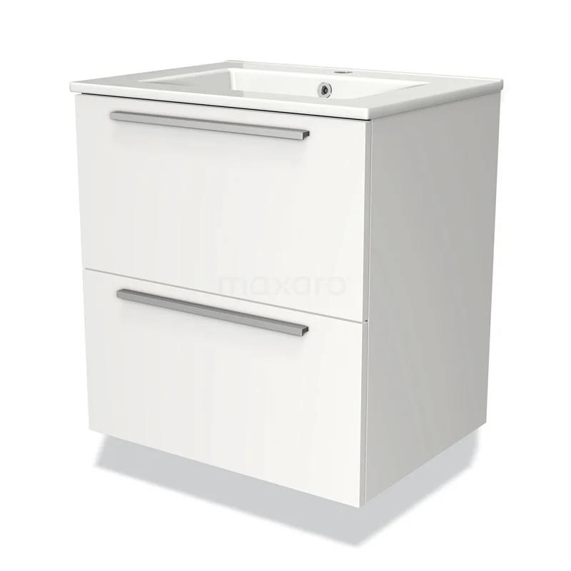 Modulo Waschtische | 60 cm Matt Weiß Flach front Keramik 2 übereinanderliegende Schubladen