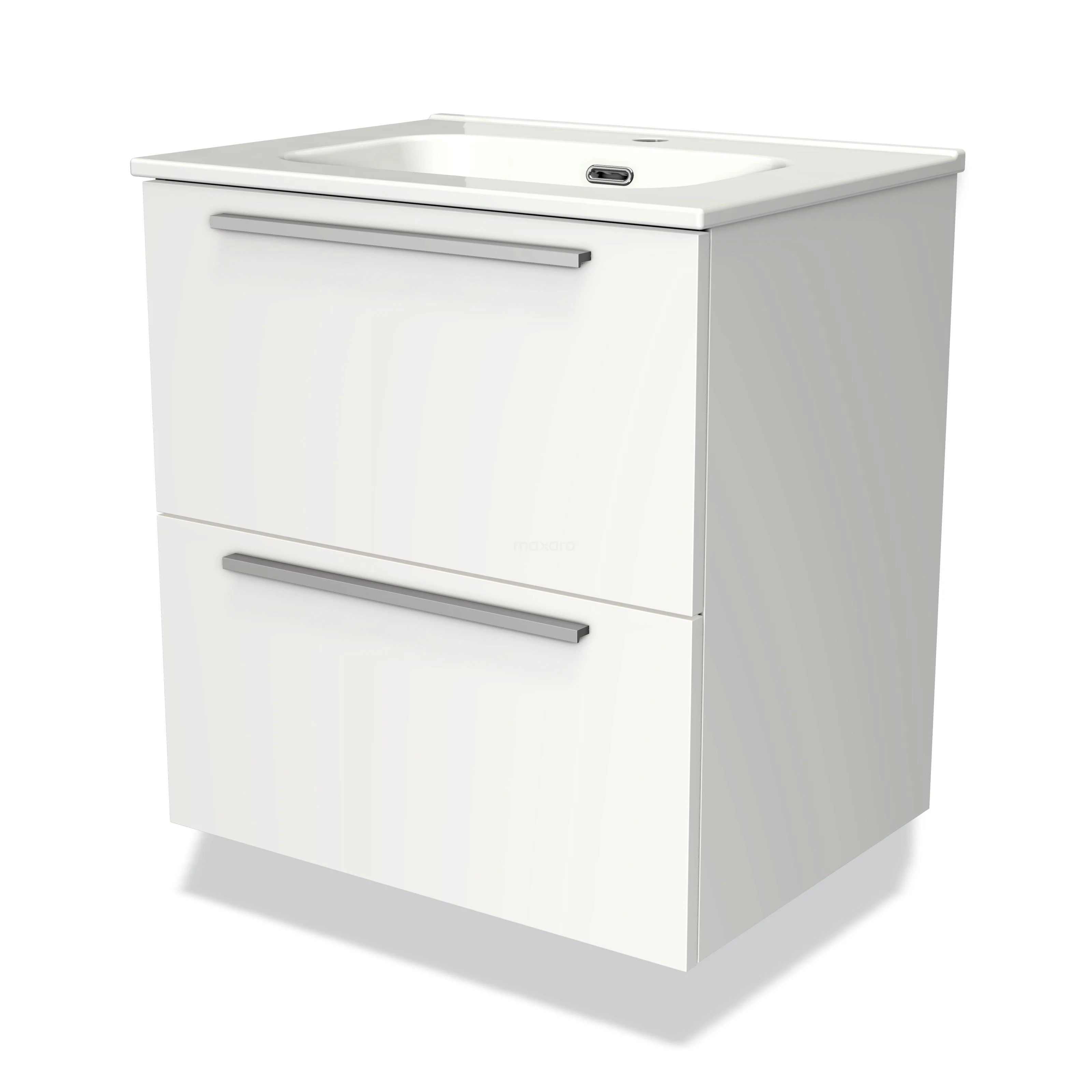 Modulo Waschtische | 60 cm Matt Weiß Flach front Keramik 2 übereinanderliegende Schubladen
