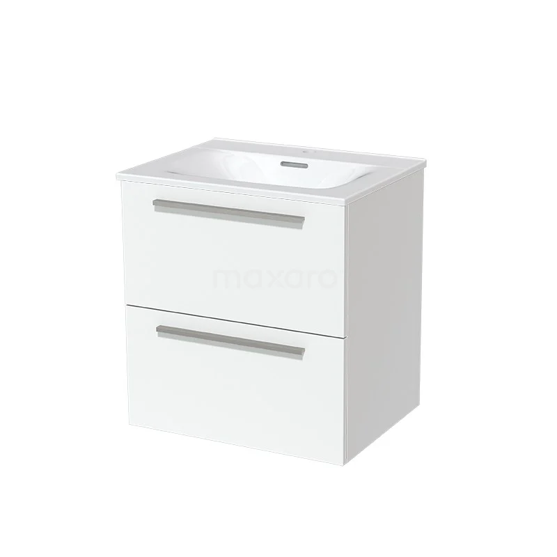 Modulo Waschtische | 60 cm Matt Weiß Flach front Keramik 2 übereinanderliegende Schubladen