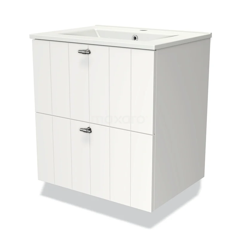 Modulo Waschtische | 60 cm Matt Weiß Lamelle front Keramik 2 übereinanderliegende Schubladen