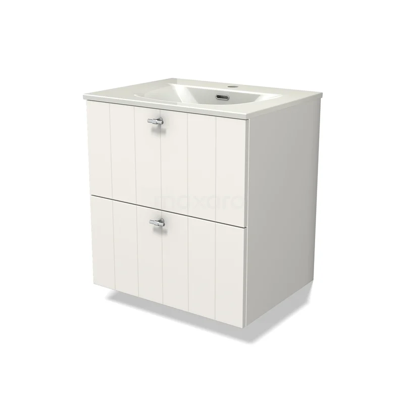 Modulo Waschtische | 60 cm Matt Weiß Lamelle front Keramik 2 übereinanderliegende Schubladen