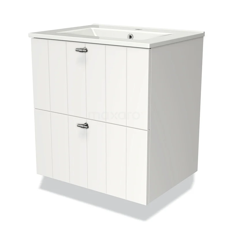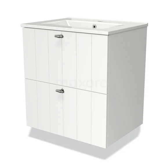 Modulo Waschtische | 60 cm Matt Weiß Lamelle front Keramik 2 übereinanderliegende Schubladen