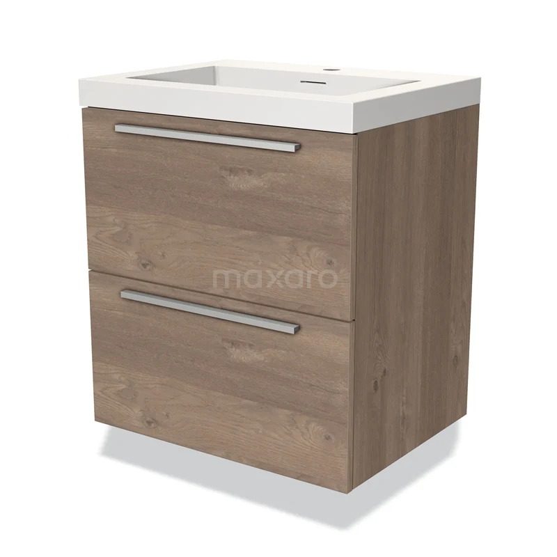 Modulo Waschtische | 60 cm Mittelbraune Eiche Flach front Solid Surface 2 übereinanderliegende Schubladen