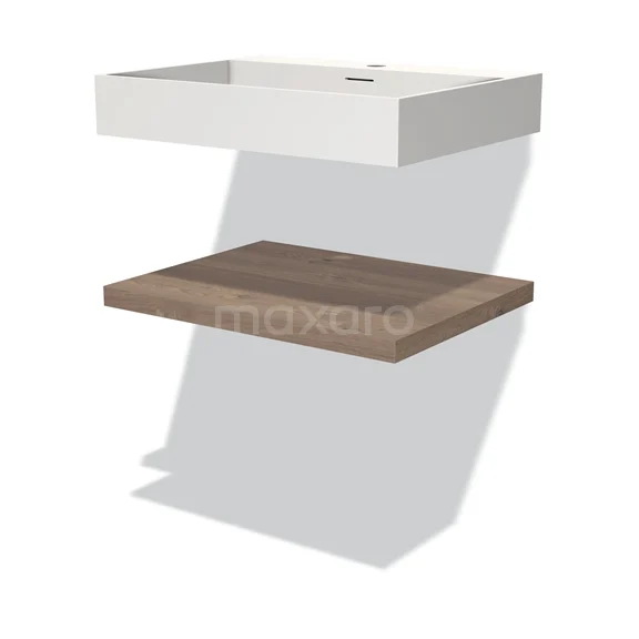 Modulo Waschtische | 60 cm Mittelbraune Eiche front Solid Surface Waschbecken mit Platte