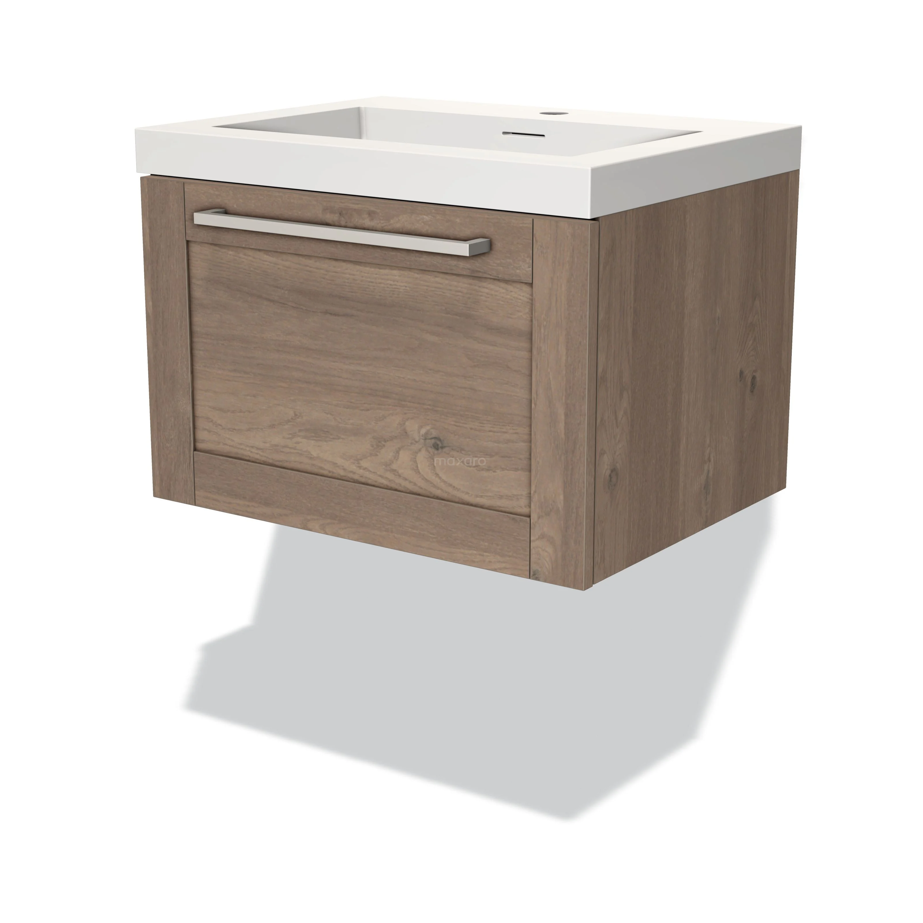 Modulo Waschtische | 60 cm Mittelbraune Eiche Rahmen front Solid Surface 1 Schublade