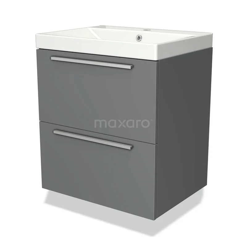 Modulo Waschtische | 60 cm Mittelgrau Flach front Keramik 2 übereinanderliegende Schubladen