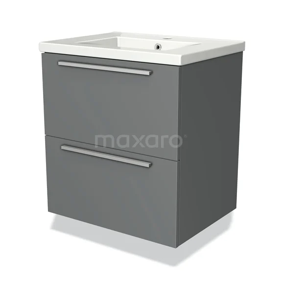 Modulo Waschtische | 60 cm Mittelgrau Flach front Keramik 2 übereinanderliegende Schubladen