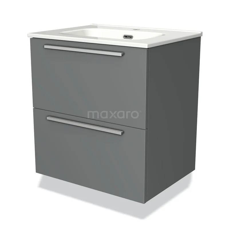 Modulo Waschtische | 60 cm Mittelgrau Flach front Keramik 2 übereinanderliegende Schubladen