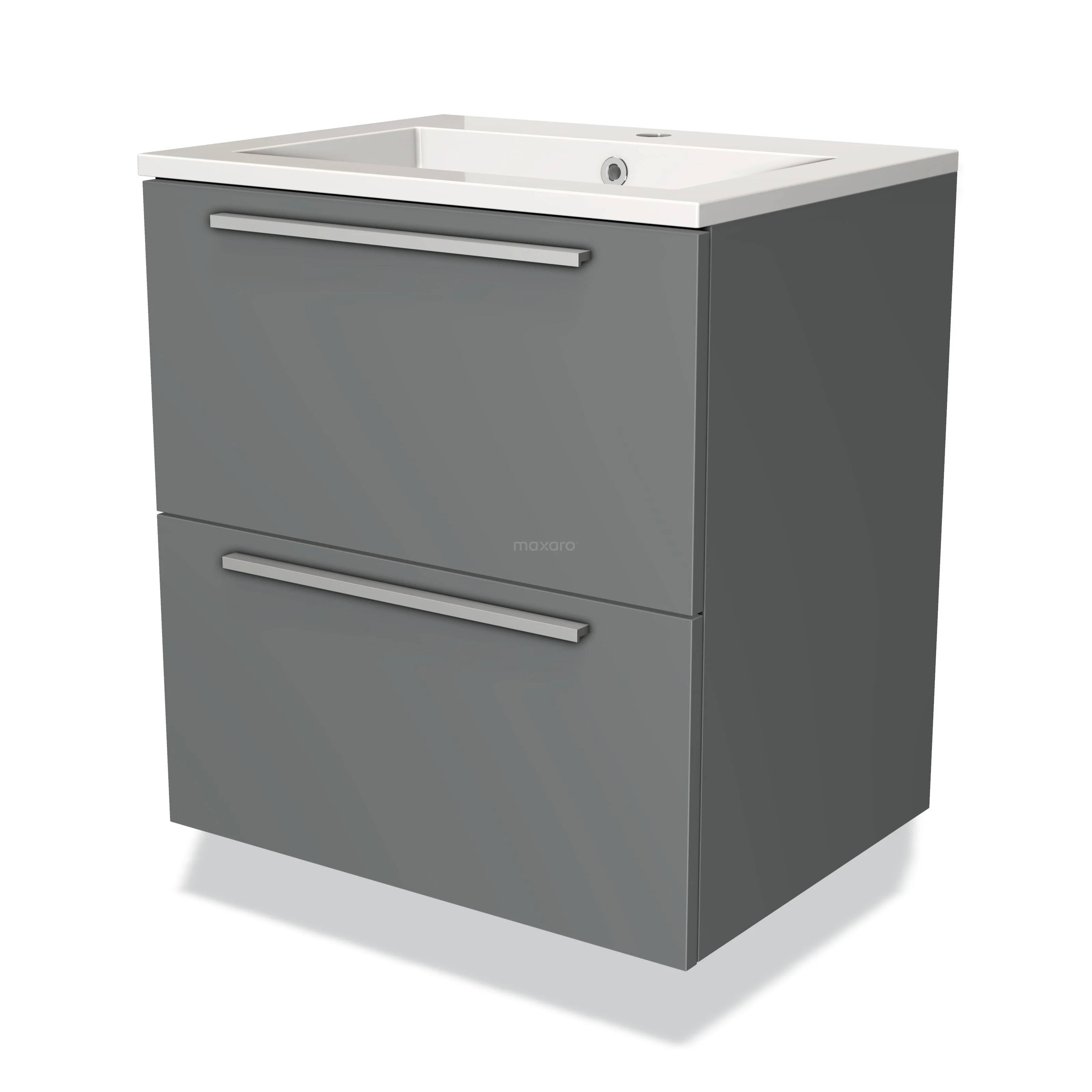 Modulo Waschtische | 60 cm Mittelgrau Flach front Mineralguss 2 übereinanderliegende Schubladen