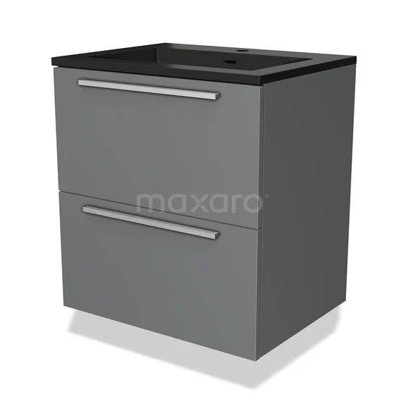 Modulo Waschtische | 60 cm Mittelgrau Flach front Quarz 2 übereinanderliegende Schubladen