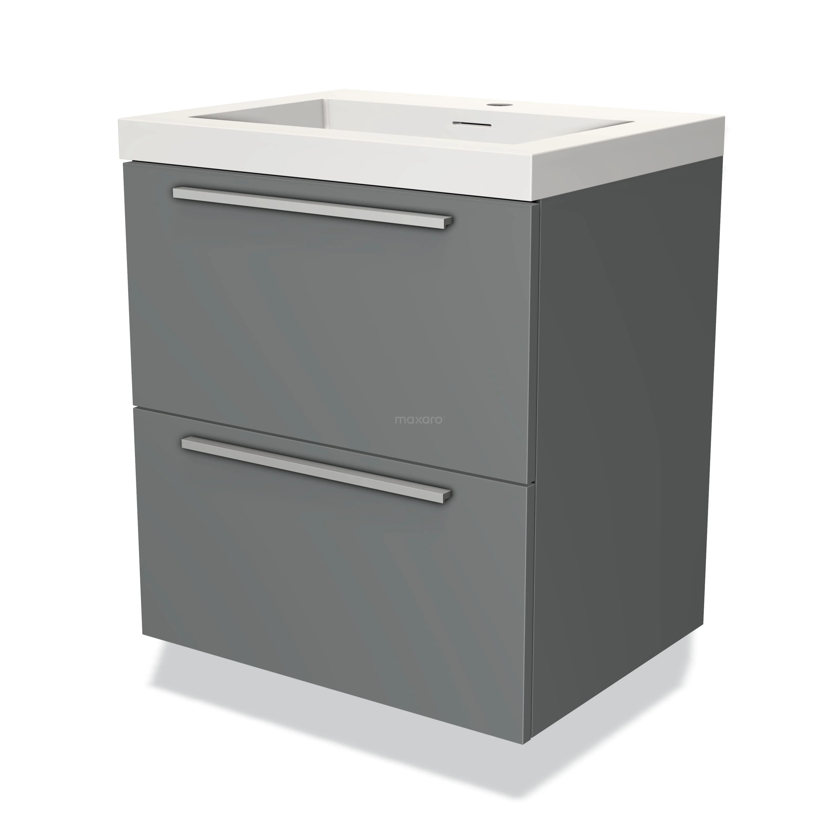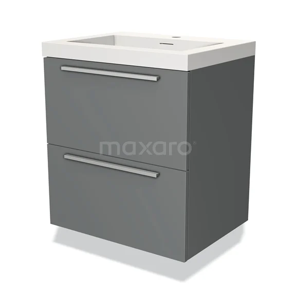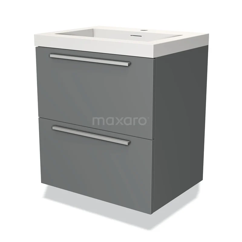 Modulo Waschtische | 60 cm Mittelgrau Flach front Solid Surface 2 übereinanderliegende Schubladen