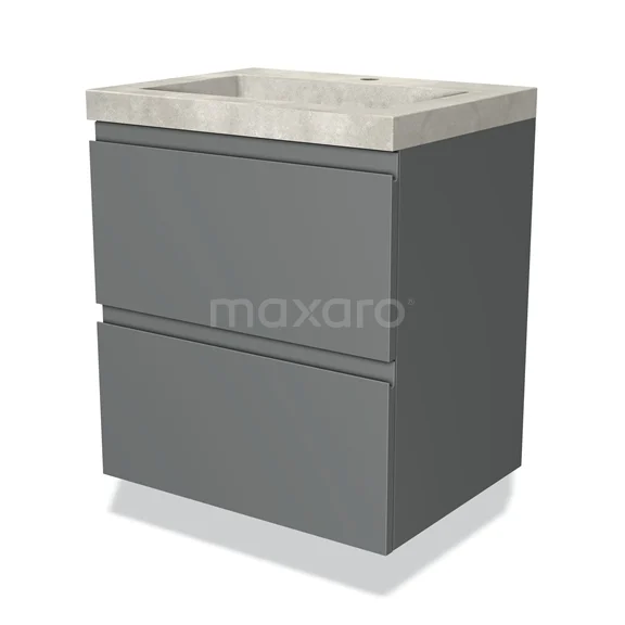 Modulo Waschtische | 60 cm Mittelgrau Grifflos front Beton 2 übereinanderliegende Schubladen