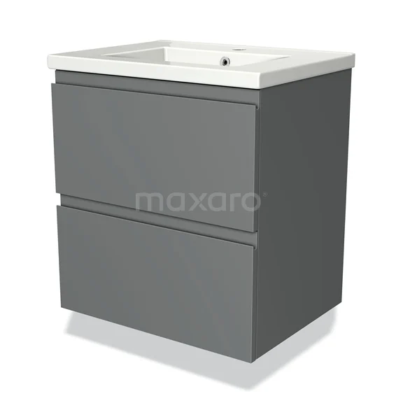 Modulo Waschtische | 60 cm Mittelgrau Grifflos front Keramik 2 übereinanderliegende Schubladen