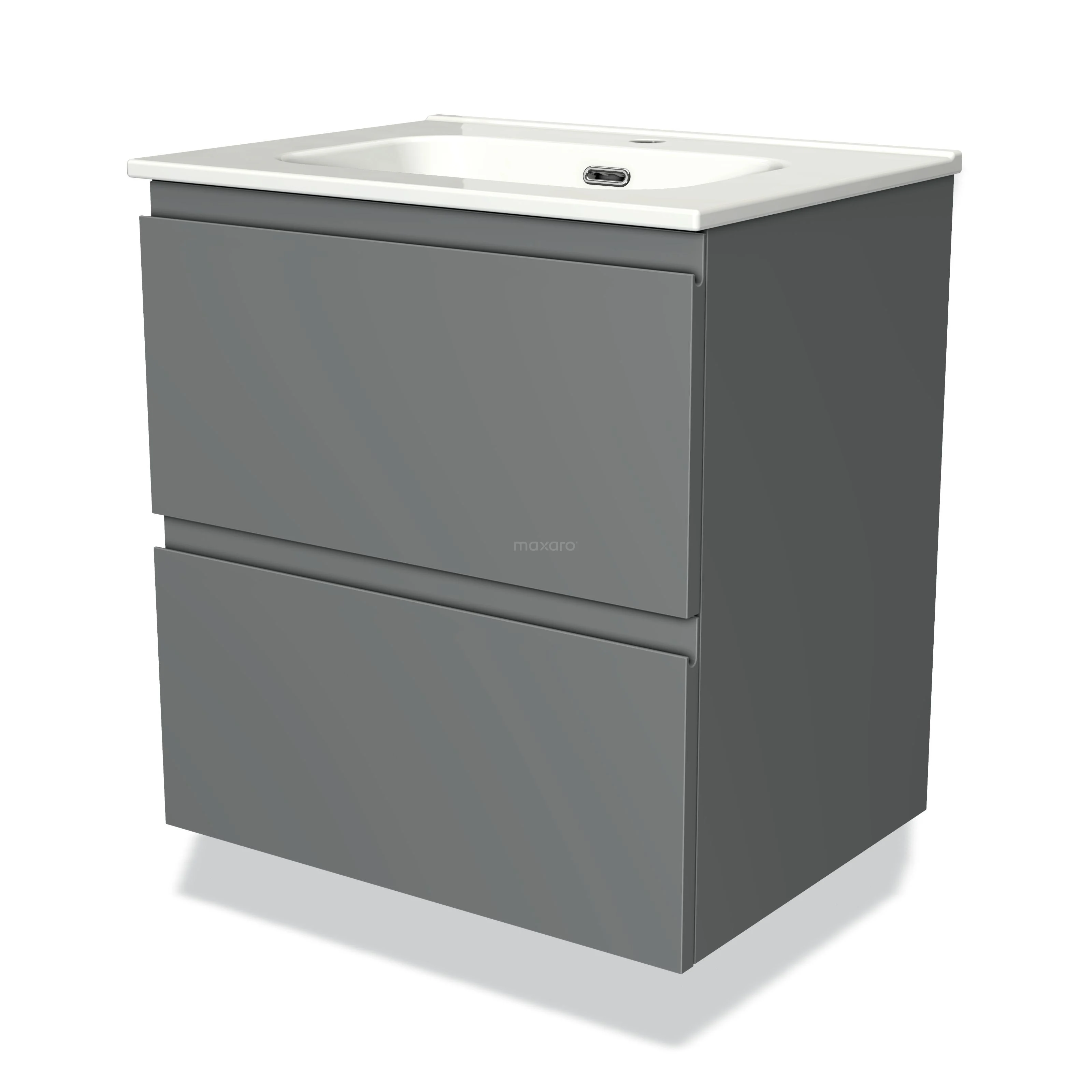 Modulo Waschtische | 60 cm Mittelgrau Grifflos front Keramik 2 übereinanderliegende Schubladen