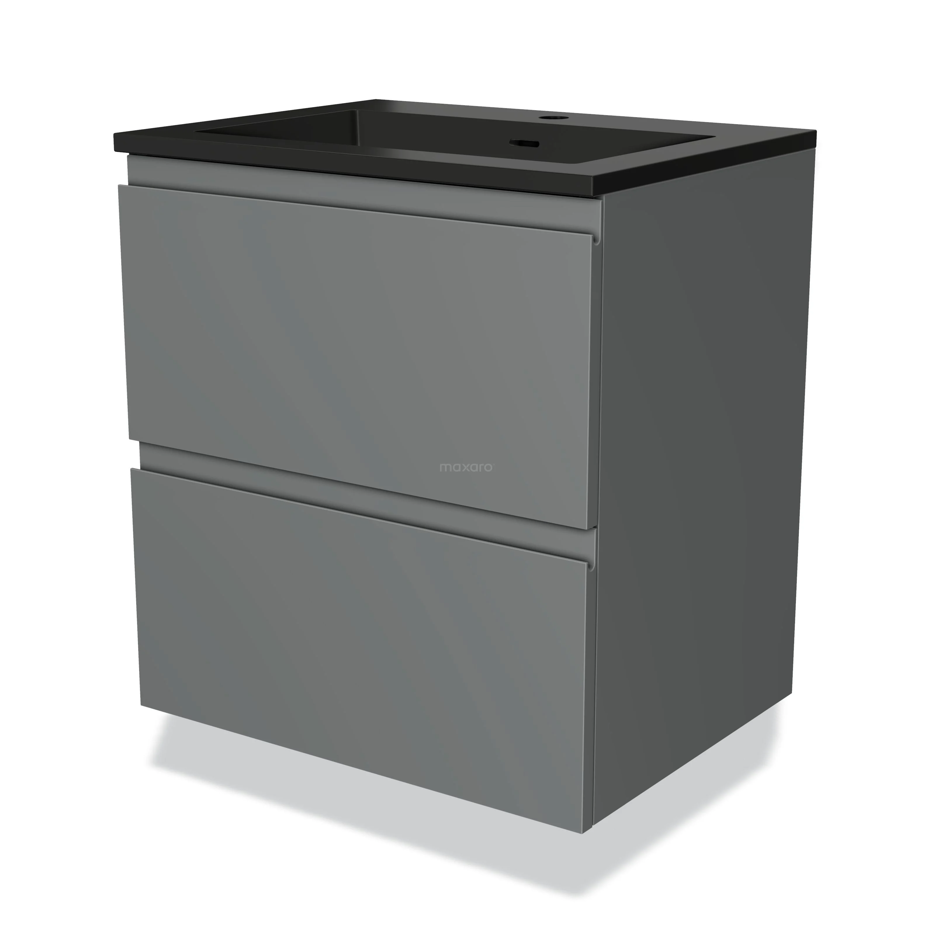 Modulo Waschtische | 60 cm Mittelgrau Grifflos front Quarz 2 übereinanderliegende Schubladen