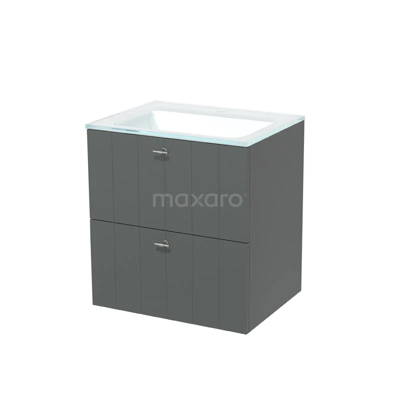 Modulo Waschtische | 60 cm Mittelgrau Lamelle front Glas 2 übereinanderliegende Schubladen