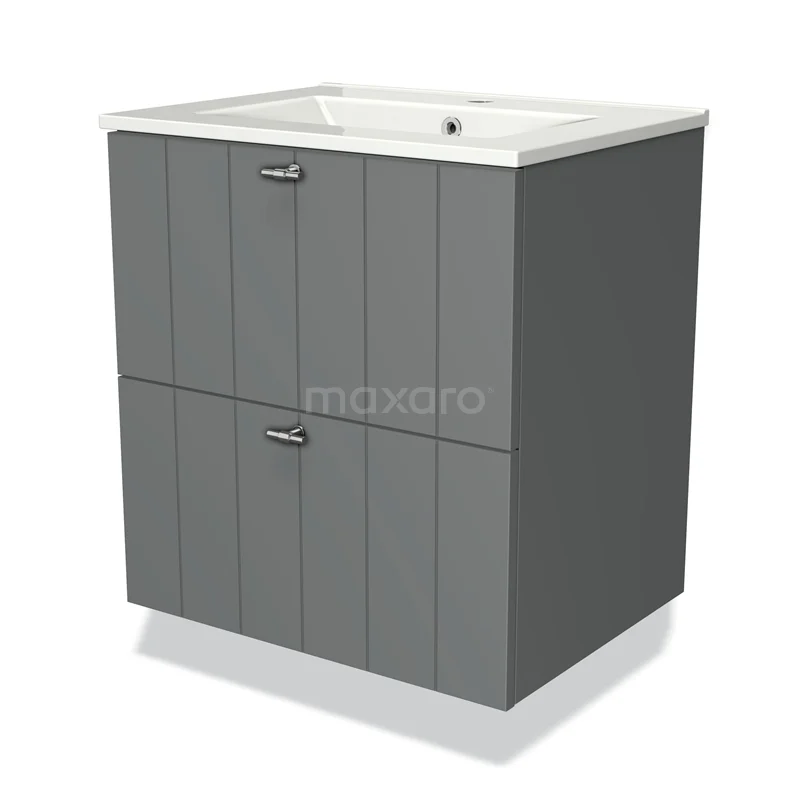 Modulo Waschtische | 60 cm Mittelgrau Lamelle front Keramik 2 übereinanderliegende Schubladen
