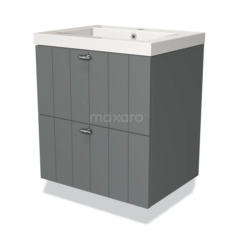 Modulo Waschtische | 60 cm Mittelgrau Lamelle front Mineralguss 2 übereinanderliegende Schubladen
