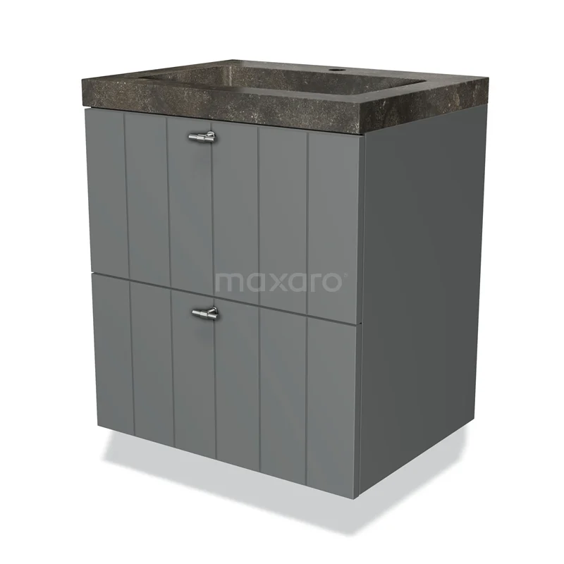 Modulo Waschtische | 60 cm Mittelgrau Lamelle front Naturstein 2 übereinanderliegende Schubladen