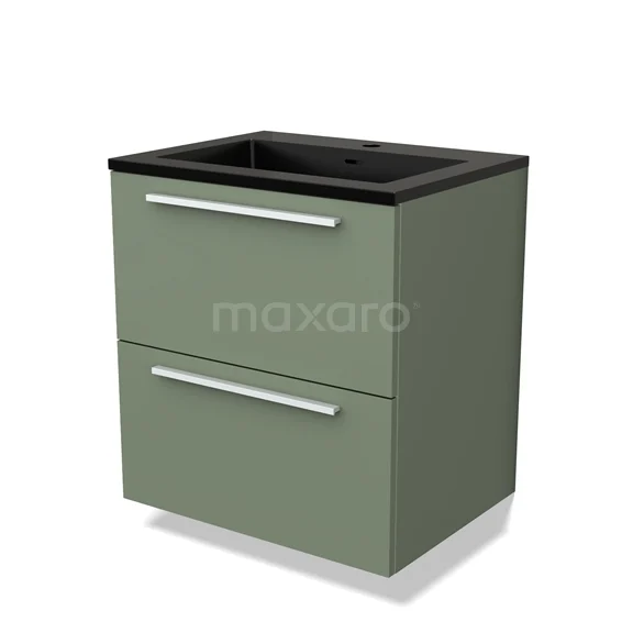 Modulo Waschtische | 60 cm Salbeigrün Flach front Quarz 2 übereinanderliegende Schubladen