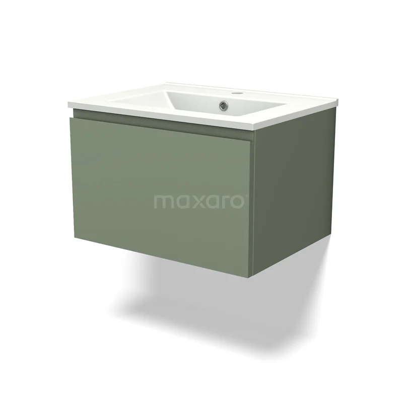 Modulo Waschtische | 60 cm Salbeigrün Grifflos front Keramik 1 Schublade
