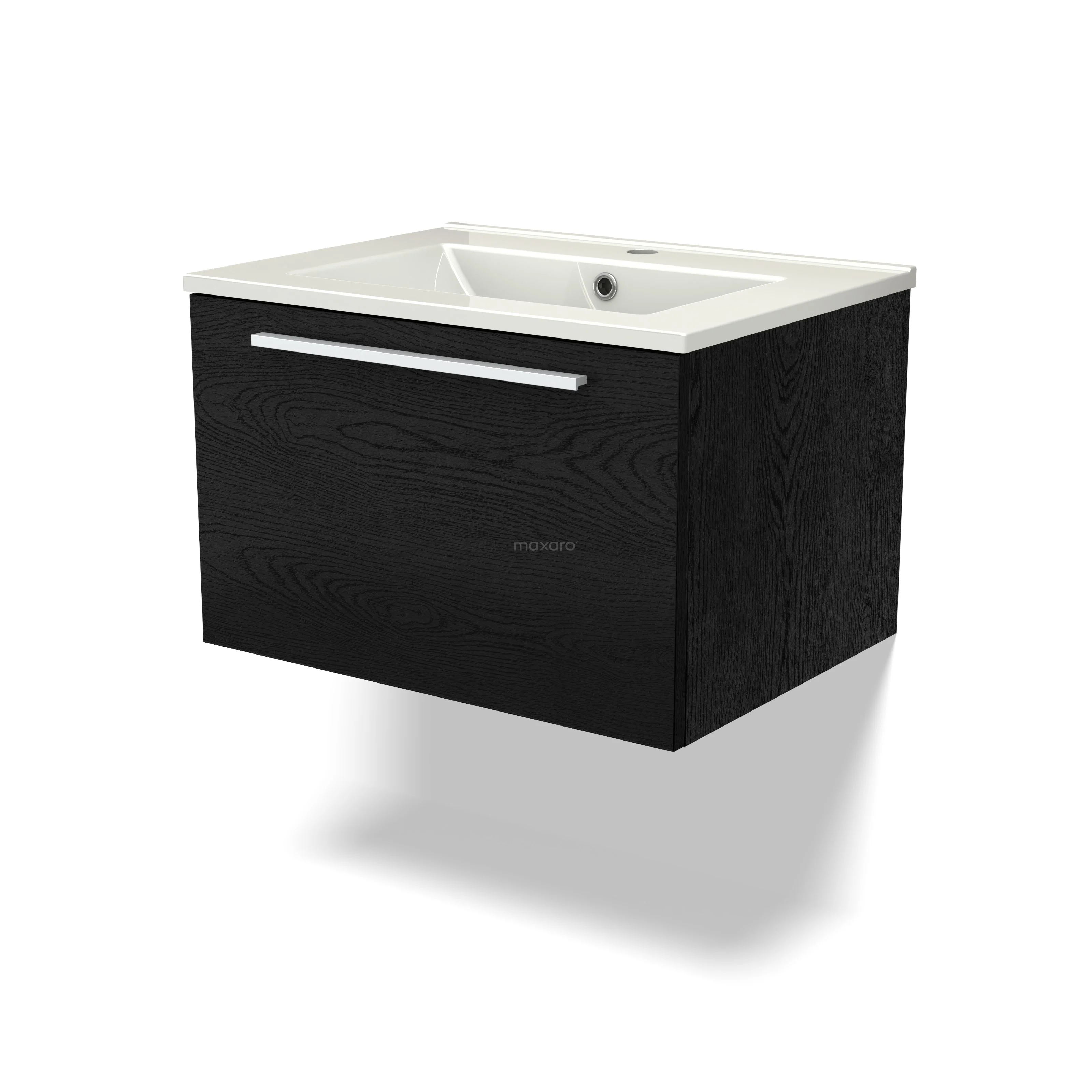 Modulo Waschtische | 60 cm Schwarze Eiche Flach front Keramik 1 Schublade