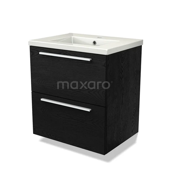 Modulo Waschtische | 60 cm Schwarze Eiche Flach front Keramik 2 übereinanderliegende Schubladen