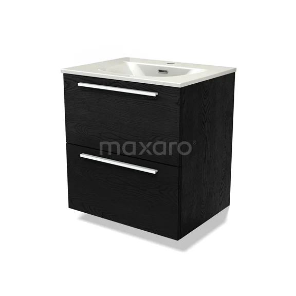 Modulo Waschtische | 60 cm Schwarze Eiche Flach front Keramik 2 übereinanderliegende Schubladen