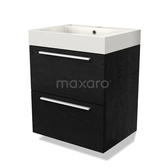 Modulo Waschtische | 60 cm Schwarze Eiche Flach front Mineralguss 2 übereinanderliegende Schubladen