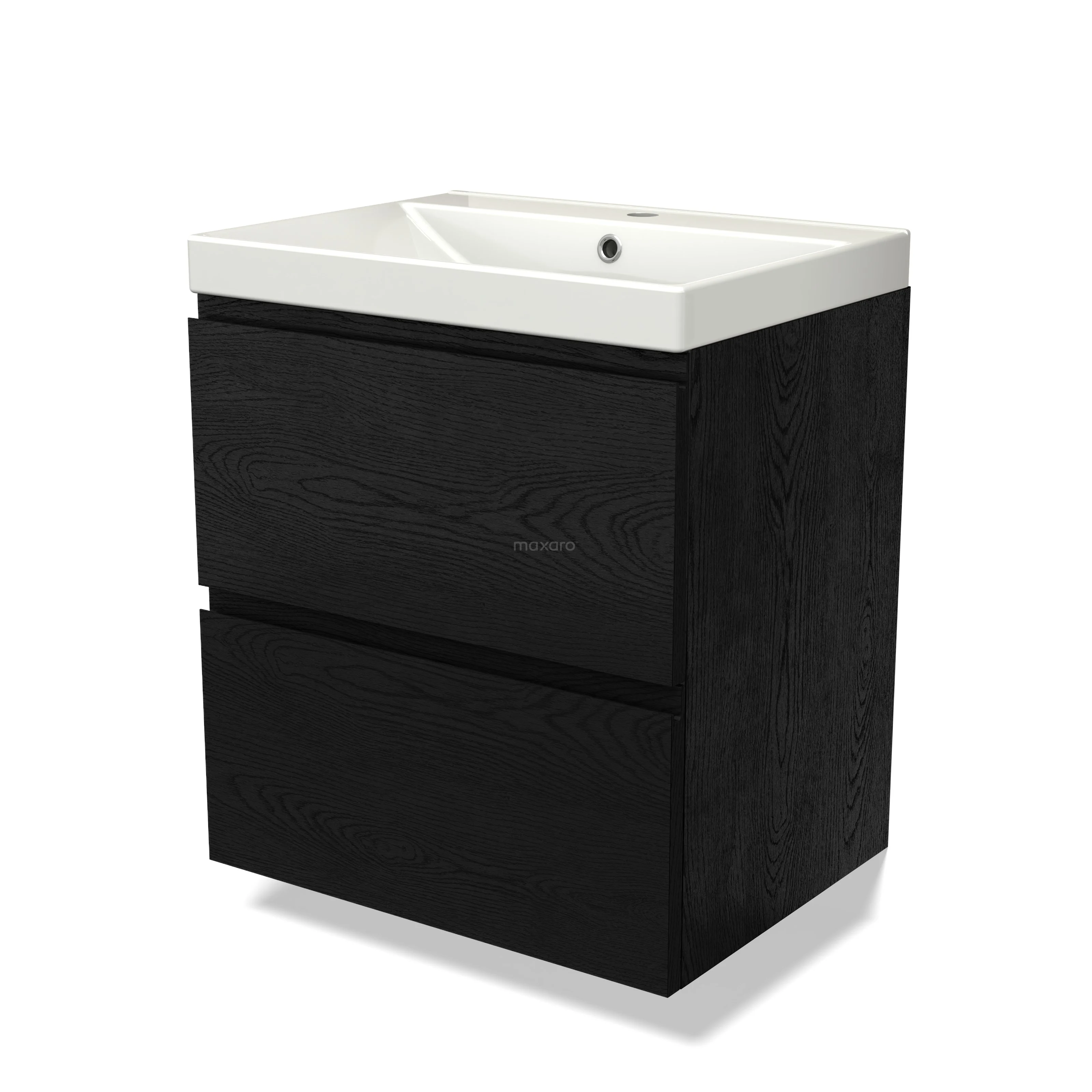 Modulo Waschtische | 60 cm Schwarze Eiche Grifflos front Keramik 2 übereinanderliegende Schubladen