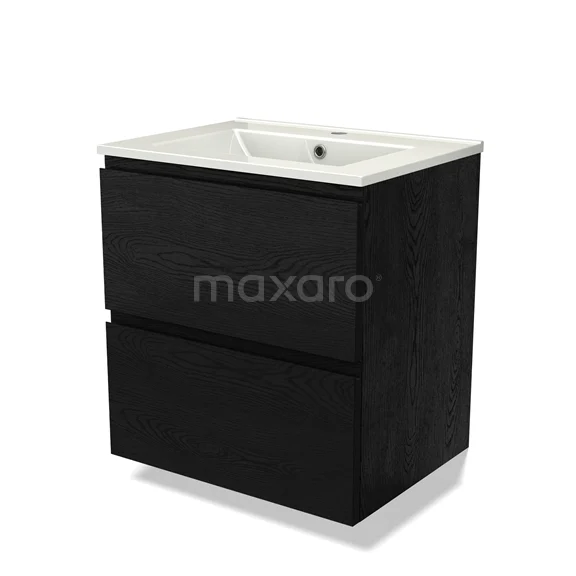 Modulo Waschtische | 60 cm Schwarze Eiche Grifflos front Keramik 2 übereinanderliegende Schubladen