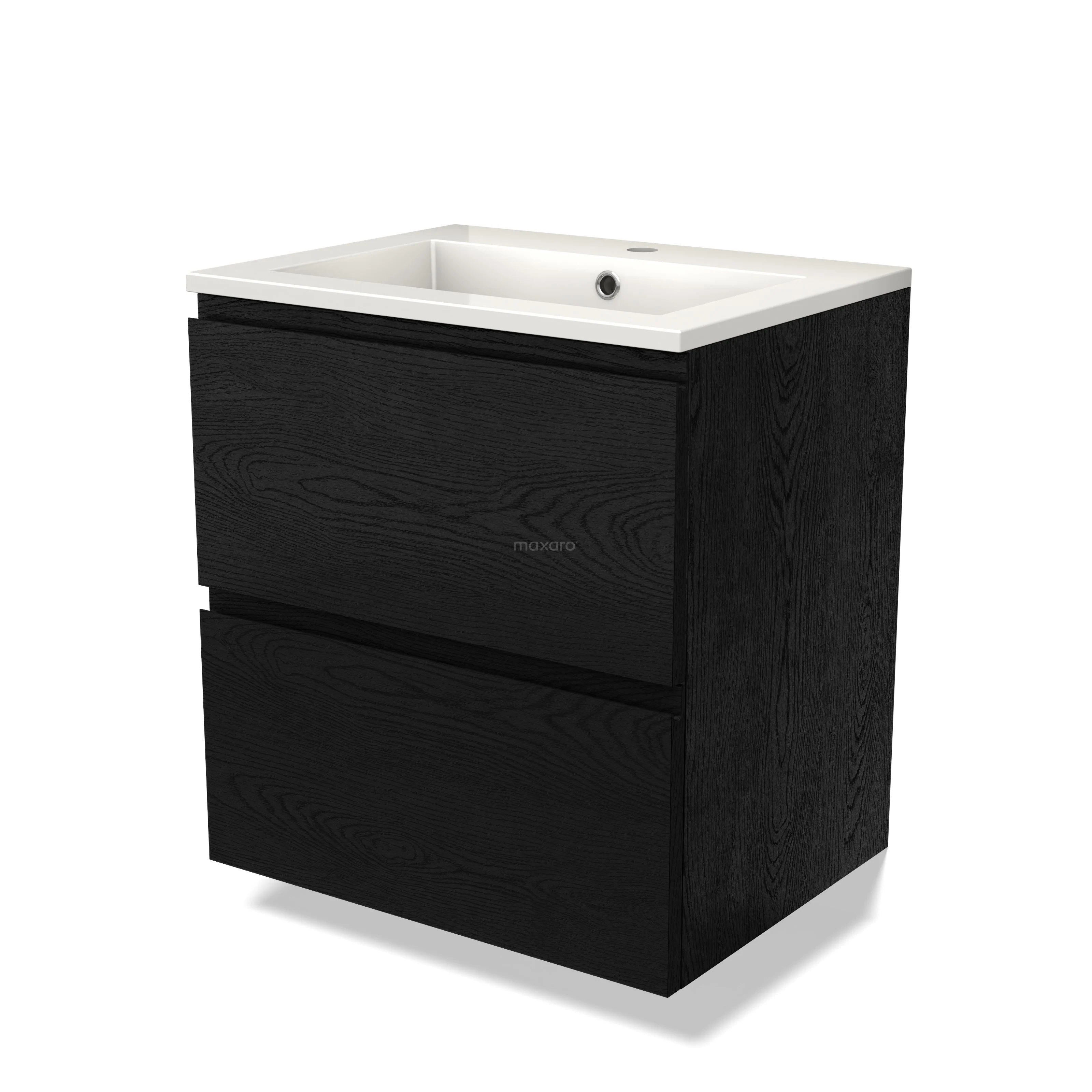 Modulo Waschtische | 60 cm Schwarze Eiche Grifflos front Mineralguss 2 übereinanderliegende Schubladen